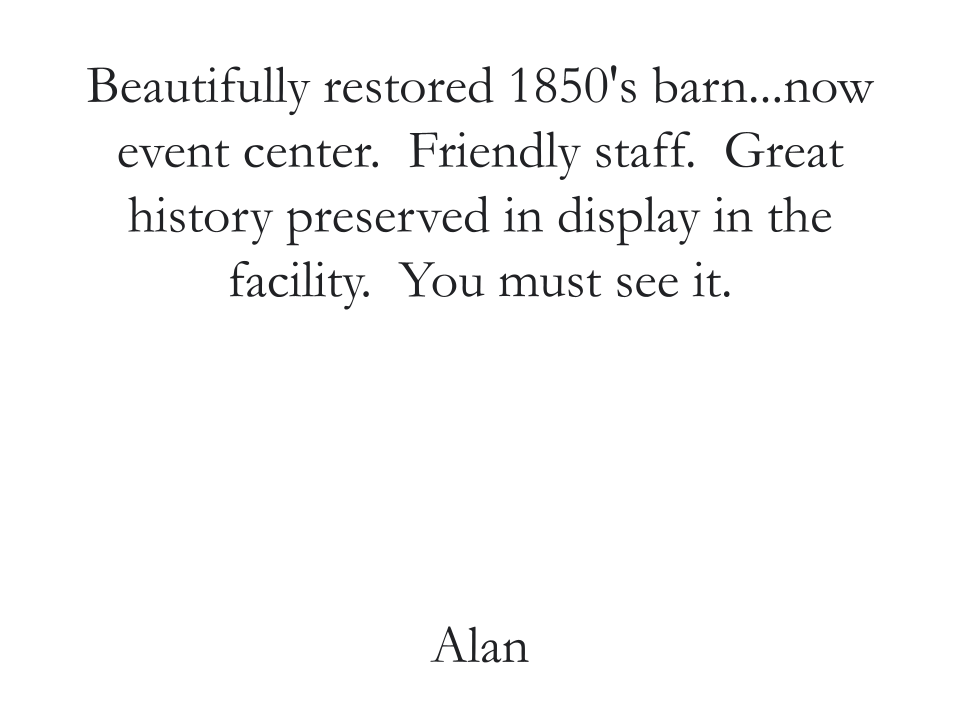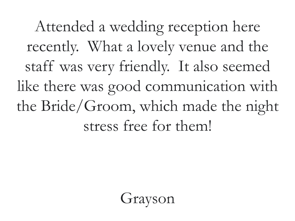 Our multi-level barn is able to accommodate all types of functions. Corporate business meetings, Christmas parties, graduations, reunions, and YES we do weddings too! We are climate controlled for year round use of our facility.